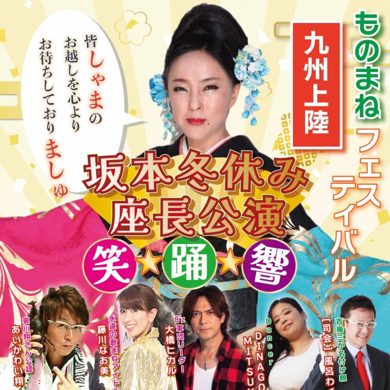 日時 2024年10月27日(日) 開場 14:00/開演 14:30 場所 プラザホール(5階) 内容 ものまねフェスティバル 「坂本冬休み 座長公演」 入場 全席指定席 4,000円(当 … 【終了しました】10/27 ものまねフェスティバル