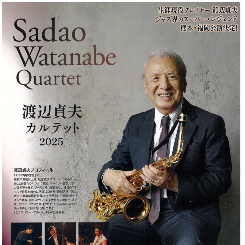 日時 2025年2月18日(火) 開場 18:00/開演 18:30 場所 プラザホール(5階) 内容 Sadao Watanabe Quartet 『渡辺貞夫 カルテット 2025』 入場 … 【終了しました】2/18 渡辺貞夫 カルテット 2025