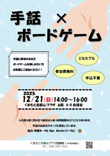 内容:手話やボードゲームを通じて、一緒に交流しましょう。手話に興味がある方、ボードゲームを楽しみたい方、ぜひお気軽にご参加ください!