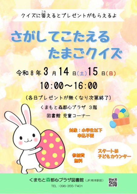 3/14・3/15 図書館クイズラリー「さがしてこたえる たまごクイズ」